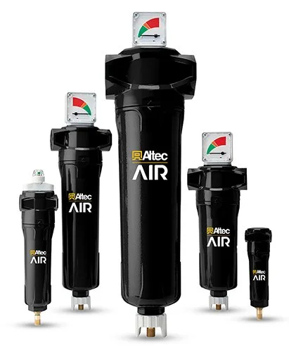 Altec AIR’s “A” Series Compressed Air Filters are rated for high efficiency and can help protect your compressed air systems from contaminants; removing dirt, oil, and water aerosols that can cause compressed air dryers to malfunction or decrease in dying efficiency. Our Air Filters will help reduce equipment downtime, improve product quality, and extend the life of your pneumatic equipment, while improving the efficiency of your compressed air system.